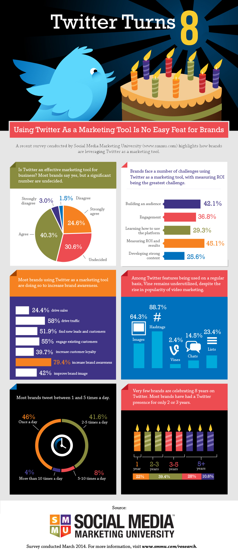 As shown in the infographic above, not many companies who are now using Twitter have been on the social media platform for long. In fact, many of them appear to be still struggling to find an audience there. While efforts to build brand awareness are slowly working, not enough companies seem to be taking advantage of all the platform has to offer, sticking to the most well known hashtags and images to promote themselves.