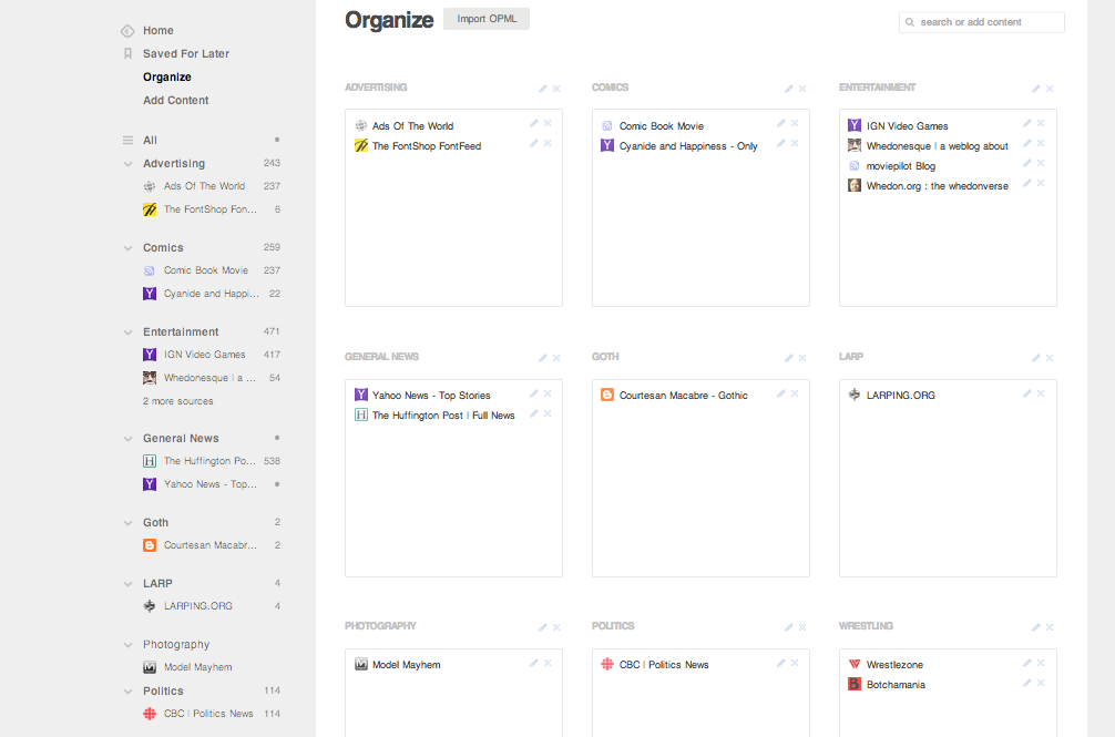 So here’s how my feedly account is organized: